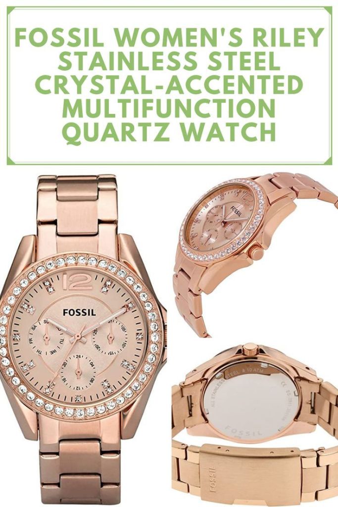 Made in USA or ImportedFossil has always been inspired by American creativity and ingenuity. Since 1984, we’ve strived to bring new life into the industry by making quality, fashionable watches and accessories that were both fun and accessible.Riley plays with proportion in a sophisticated way. With a classic shape and sporty features, Riley is a style that transcends the season.Case size: 38mm; Band size: 18mm; quartz movement with multifunction display; hardened mineral crystal lens resists scratches; importedRose gold-tone stainless steel case with rose gold-tone dial; rose gold-tone stainless steel bracelet band with single press deployant clasp closureWater resistant to 100m (330ft): suitable for bathing, swimming or snorkeling, but is not resistant enough to withstand scuba divingCustomize your watch with complimentary engraving at a local Fossil store. Engraving is available at participating U.S. and Canadian full-priced and outlet Fossil stores. This service is not applicable on all accessories.